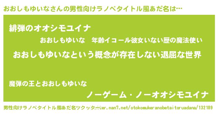 | 女子向けラノベタイトル風あだ名 | 『おおしもゆいなの契約王妃』 |