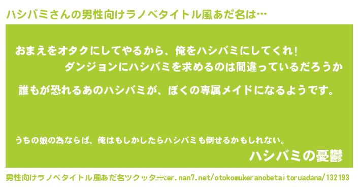 | ヘコむあだ名 | 『ハシバミ(笑)』『ハシっふぃ~』 |