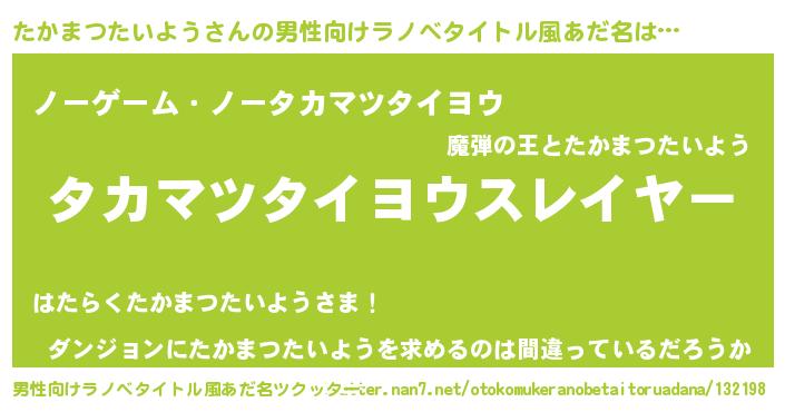 | 料理風あだ名 | 『たかまつたいようごはん』 |