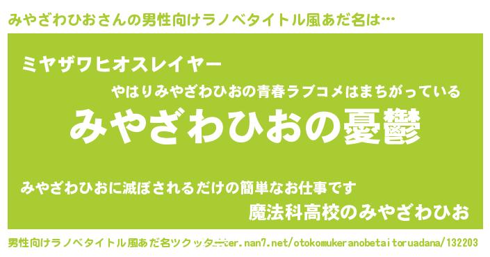 | ヒーロー風カッコイイあだ名 | 『スーパーミヤザワヒオ』『暗黒騎士ミヤ』 |