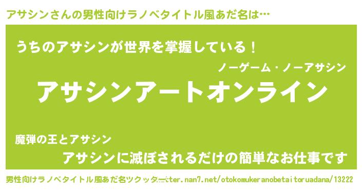 | 女子向けラノベタイトル風あだ名 | 『誰かこのアサシンを説明してください! ~契約から始まるウェディング~』 |