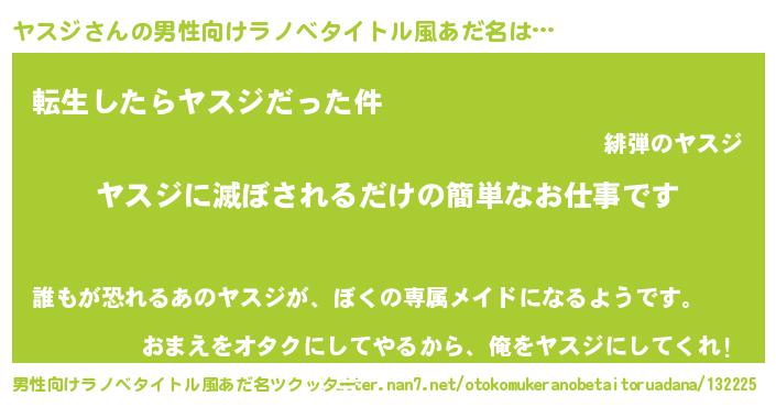 | 女子向けラノベタイトル風あだ名 | 『横柄ヤスジと宰相陛下』 |