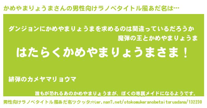| 意味不明あだ名 | 『とにかく怪しいかめやまりょうま』 |