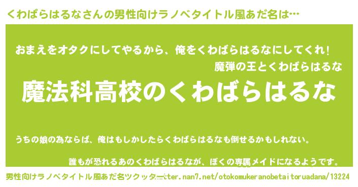 | 女子向けラノベタイトル風あだ名 | 『くわばらはるななんてお断りですっ。』 |