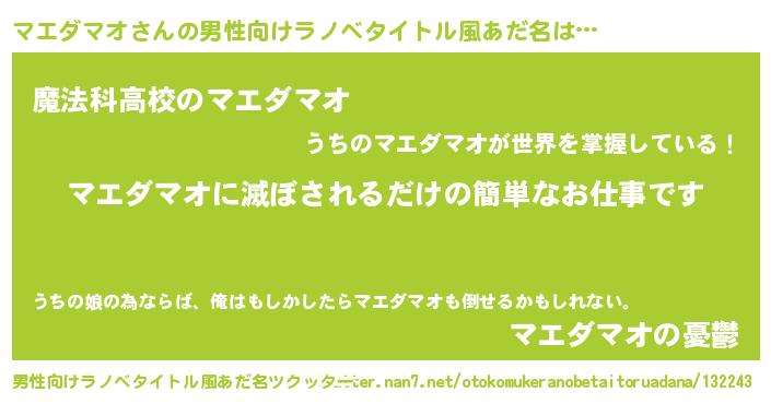 | 女子向けラノベタイトル風あだ名 | 『横柄マエダマオと宰相陛下』 |