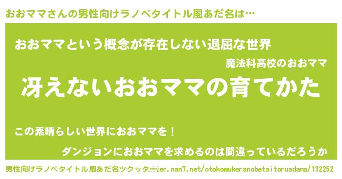 | 胡散臭い通販商品みたいなあだ名 | 『来世でも幸せになれる健康食品…その名も「おおママ」』 |