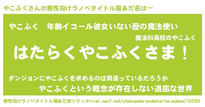 | 意味不明あだ名 | 『たけのこ科やこふく属』『自称やこふく』 |