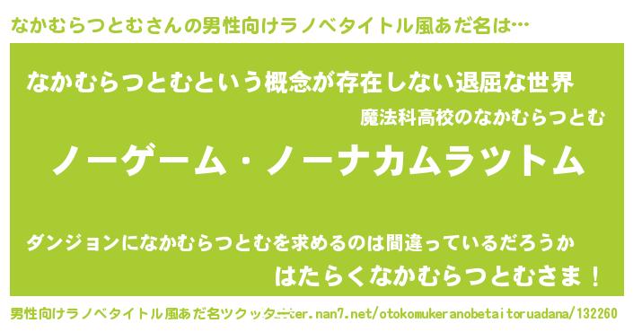 | ヘコむあだ名 | 『なかむらつとむ(遠い目)』『なか太郎』 |