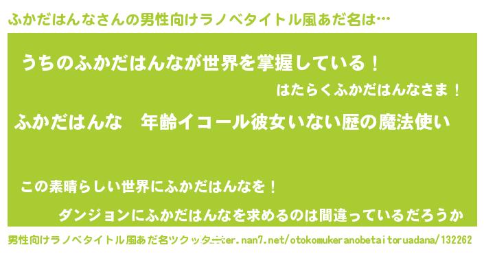 | 伝説のあだ名 | 『覚醒した遊び人ふかだはんな』 |
