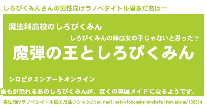 | ヘコむあだ名 | 『しろぴくみん(小並感)』『しろ太郎』 |