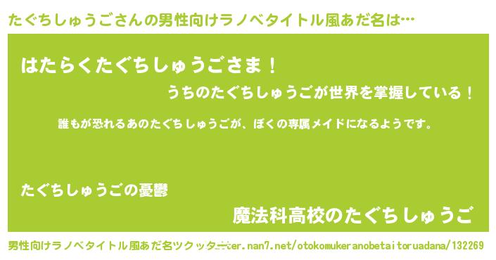| ヒーロー風カッコイイあだ名 | 『ネオタグチシュウゴ』『仮面タグダー』 |