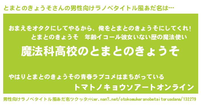 とまとのきょうそさんの男性向けラノベタイトル風あだ名をツクッター!