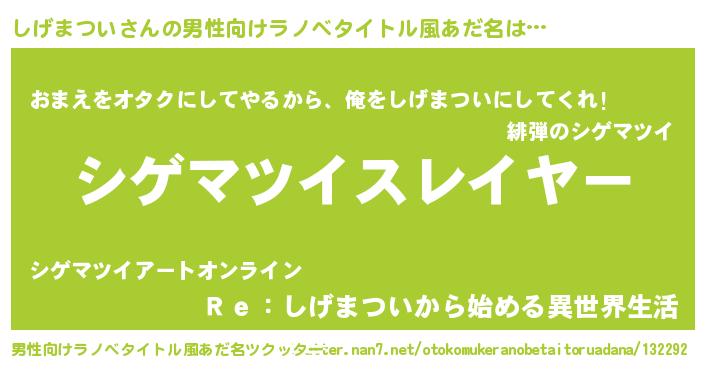 | ヒーロー風カッコイイあだ名 | 『友情の使者しげまつい』『炎刃騎士シゲ』 |