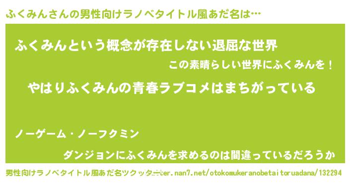 | 胡散臭い通販商品みたいなあだ名 | 『世界が平和になる高級そうな壺…その名も「ふくみん」』 |