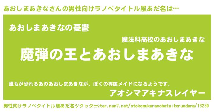| 意味不明あだ名 | 『住所不定無職あおしまあきな(95歳)』 |
