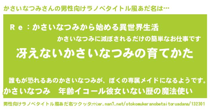 | 伝説のあだ名 | 『古より伝わる勇者かさいなつみ』 |