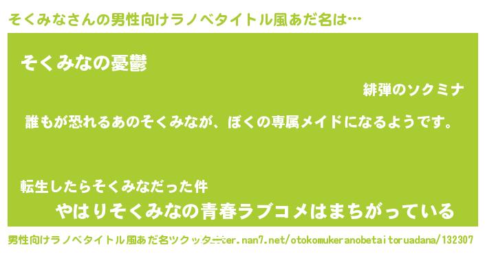 | 女子向けラノベタイトル風あだ名 | 『そくみなの契約王妃』 |