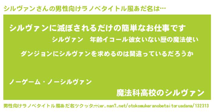 | 女子向けラノベタイトル風あだ名 | 『シルヴァンは平凡を望む』 |