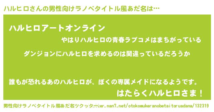 | 胡散臭い通販商品みたいなあだ名 | 『伝統あるサプリメント…その名も「ハルヒロ」』 |