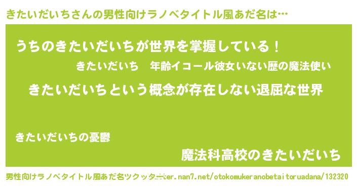 | 胡散臭い通販商品みたいなあだ名 | 『絶対に幸福をもたらす健康食品…その名も「きたいだいち」』 |