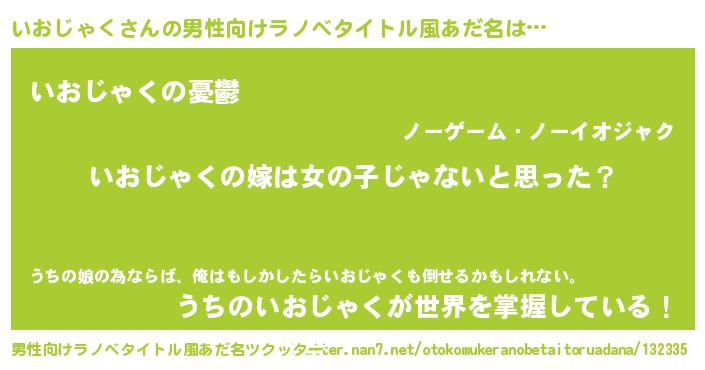 | 女子向けラノベタイトル風あだ名 | 『いおじゃくの卵を拾いまして』 |