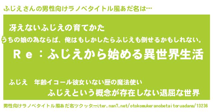 | 意味不明あだ名 | 『自称ふじえ』『永久保存ふじえ』 |