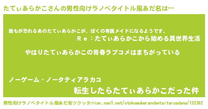 | 意味不明あだ名 | 『たてぃあらかこフォーエバー』 |
