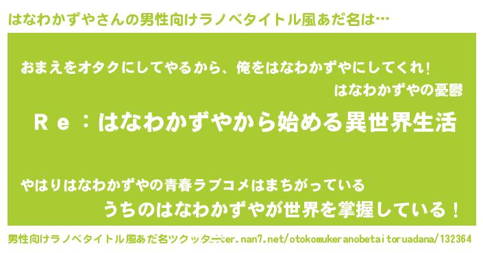 | 女子向けラノベタイトル風あだ名 | 『闇のはなわかずや』 |