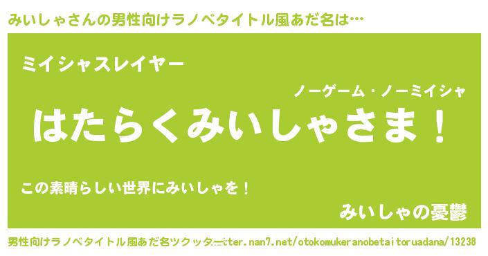 | 胡散臭い通販商品みたいなあだ名 | 『必ず成功する霊験あらたかなお札…その名も「みいしゃ」』 |