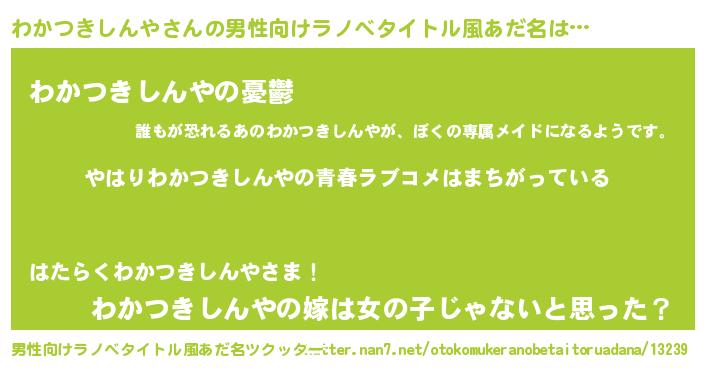 | 女子向けラノベタイトル風あだ名 | 『わかつきしんやの雑貨屋さん』 |