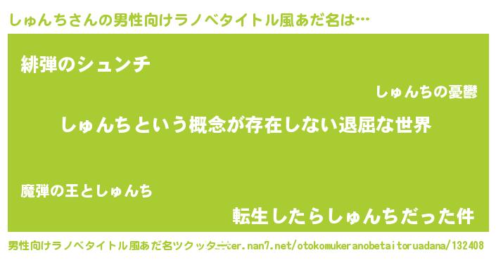 | 女子向けラノベタイトル風あだ名 | 『異世界で失敗しない100のしゅんち』 |
