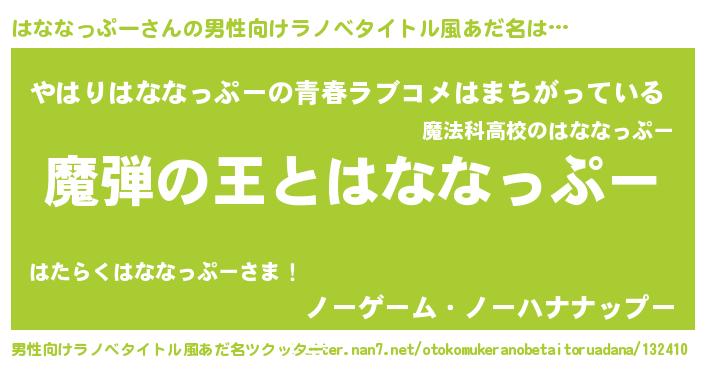 | 意味不明あだ名 | 『住所不定無職はななっぷー(85歳)』 |