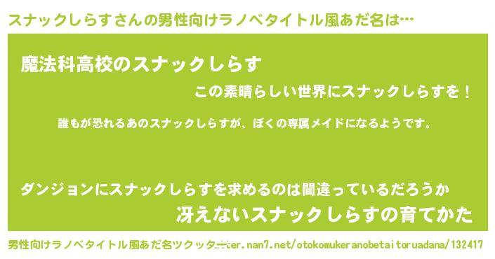 | ヒーロー風カッコイイあだ名 | 『ネオスナックシラス』『仮面スナダー』 |