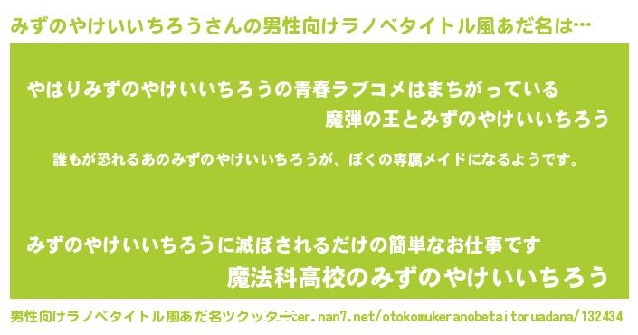 | ヘコむあだ名 | 『みずのやけいいちろう(笑)』『豆乳』 |