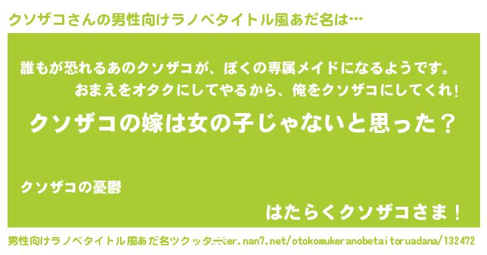 | 女子向けラノベタイトル風あだ名 | 『クソザコ様がみてる』 |
