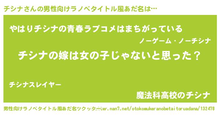 | 女子向けラノベタイトル風あだ名 | 『チシナ様がみてる』『チシナ伯爵の花嫁』 |
