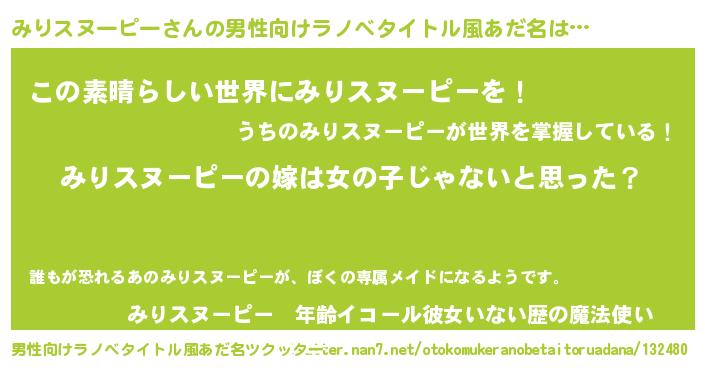 | 胡散臭い通販商品みたいなあだ名 | 『伝統あるサプリメント…その名も「みりスヌーピー」』 |