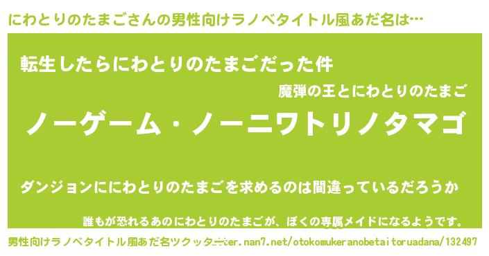 | ヒーロー風カッコイイあだ名 | 『慈愛の使者にわとりのたまご』 |