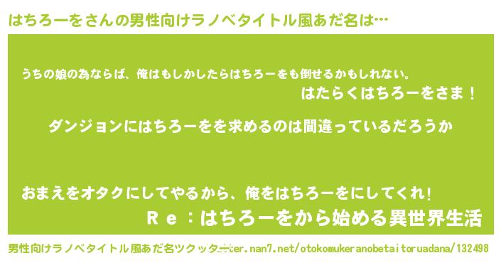| ポケモン風あだ名 | 『ヒハチローヲ』『ハチロダネ』 |