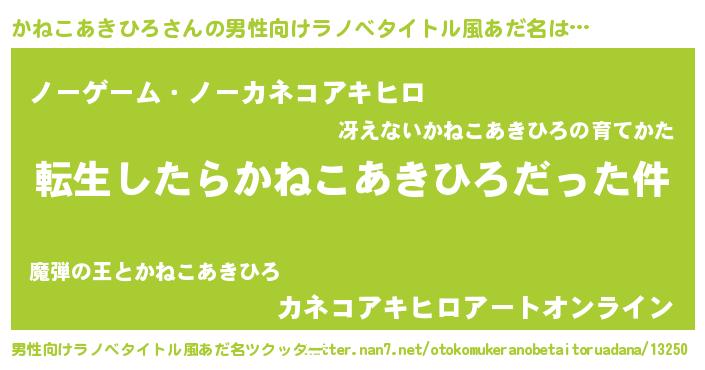 | 女子向けラノベタイトル風あだ名 | 『かねこあきひろの玉の輿計画!』 |