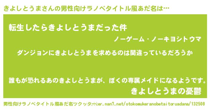 | 胡散臭い通販商品みたいなあだ名 | 『信頼と実績のペンダント…その名も「きよしとうま」』 |