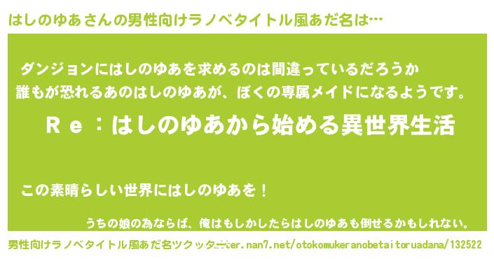 | ヒーロー風カッコイイあだ名 | 『最強戦士ハシノユア』『暗黒騎士ハシ』 |