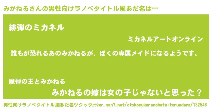 | 胡散臭い通販商品みたいなあだ名 | 『前代未聞の水素水…その名も「みかねる」』 |