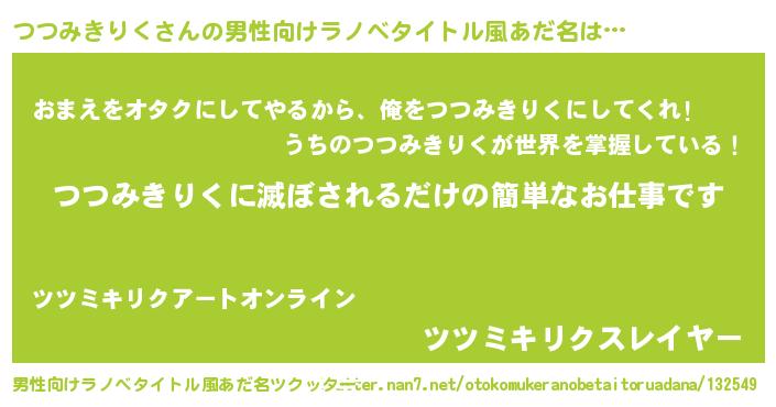 | 伝説のあだ名 | 『救世主となる錬金術士つつみきりく』 |