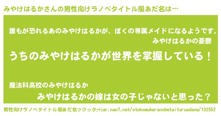 | ヘコむあだ名 | 『みやけはるか(笑)』『みやお』 |