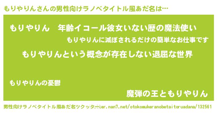 | 女子向けラノベタイトル風あだ名 | 『異世界で失敗しない100のもりやりん』 |