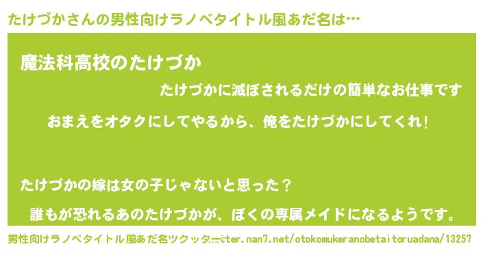 | ヘコむあだ名 | 『たけづか(笑)』『たけっ子』 |