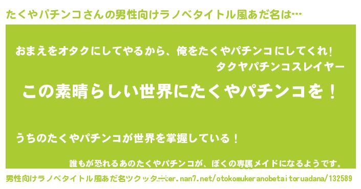 | 女子向けラノベタイトル風あだ名 | 『悪役たくやパチンコに転生したようですが、知った事ではありません』 |