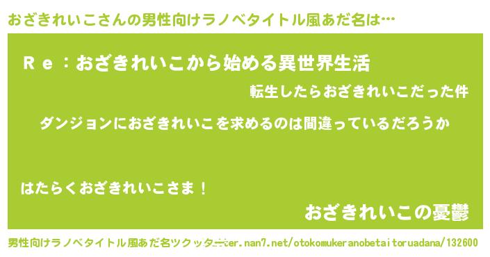 | 女子向けラノベタイトル風あだ名 | 『おざきれいこは平凡を望む』 |
