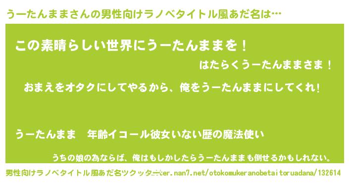 | 女子向けラノベタイトル風あだ名 | 『うーたんまま夫妻のなれそめ』 |